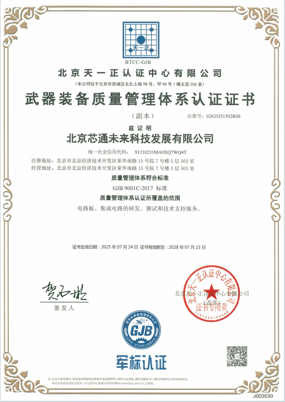 北京芯通未来科技发展有限公司是高新技术企业,以“稳健、创新、专注、担当”为核心理念,始终致力于两个方向研发与应用。一是研发设计军工国防、民品等高可靠性集成电路产品,提供自主可控军工模拟芯片及其相关的板级产品和整机设备;二是与卫星通信相关的高速高精度ADC和DAC、卫星通信及终端产品,打造天地一体化空间通信网络环境。